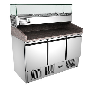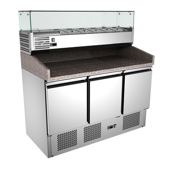 상업용 주방 장비 3 도어 스테인리스 스틸 201/304 냉장고 준비 테이블 단일 온도 피자 카운터 칠러